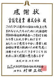私達、宝住宅産業は毎年、年末に福祉の向上と歳末助け合いにと